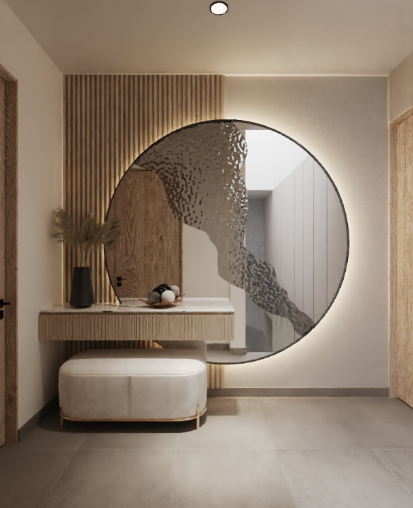TAPIZADO EN TELA SUAVE TAUPE CON ESTRUCTURA DORADA METALICA