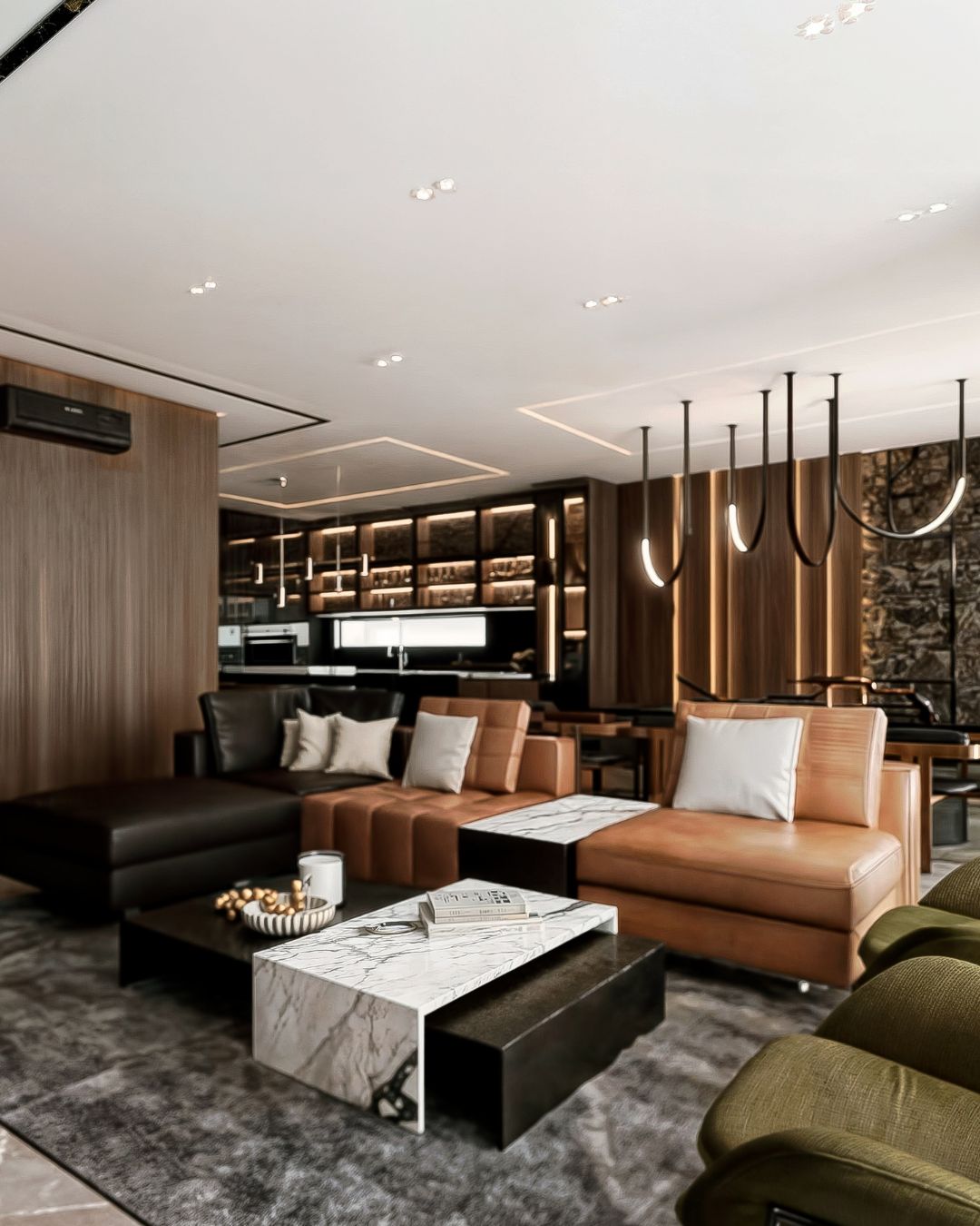 MESA DE CENTRO, 2 PZAS 1 TAPIZADA EN PIEL NEGRA, 1 PIEDRA TECNOLOGICA LIOLI CALACATTA